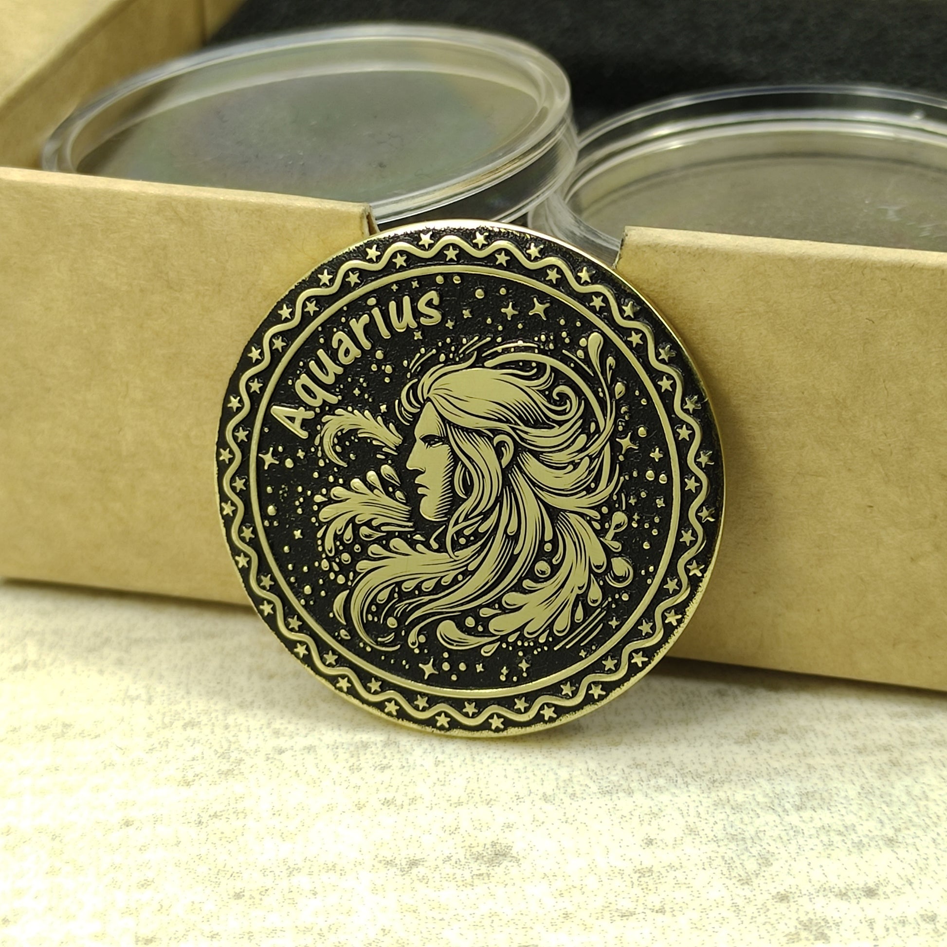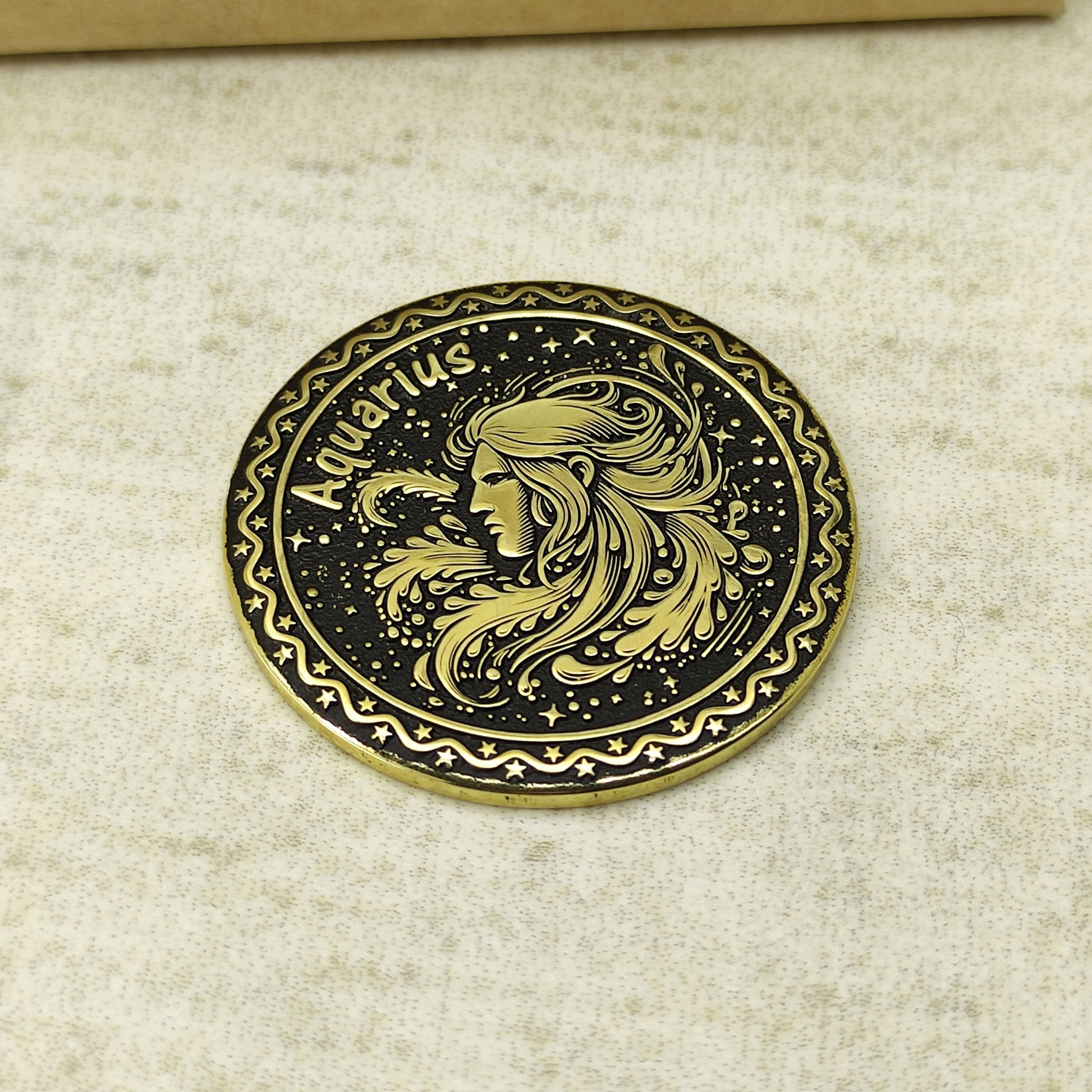 Brass Aquarius Zodiac Coin – Personalized Engraved Astrological Gift