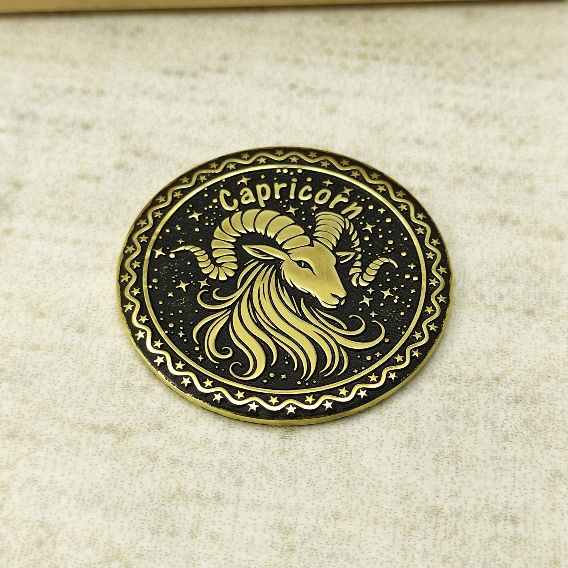 Brass Capricorn Zodiac Coin – Personalized Engraved Astrological Gift