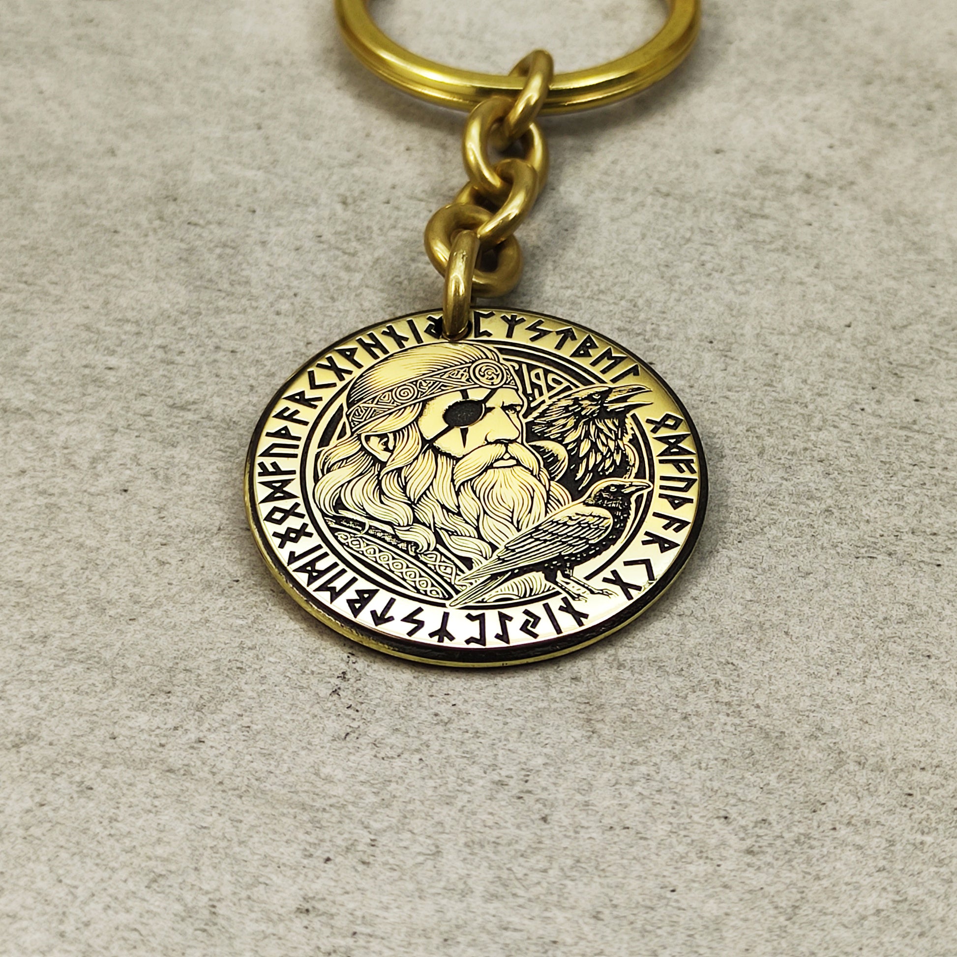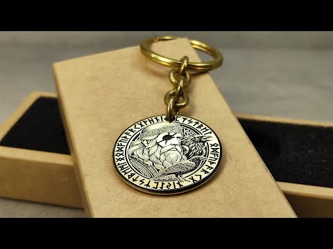 This brass keychain coin features a detailed engraving of Odin with his ravens Huginn and Muninn, symbolizing wisdom, strength, and protection. Made from durable brass with deep engraving, it has a luxurious weight and timeless golden tone. It’s an ideal accessory for Norse mythology enthusiasts, Viking fans, or anyone seeking a unique handmade gift. You can personalize the back with a custom engraving to make it truly one-of-a-kind. Perfect as a keychain for keys, bags, or cars, and a powerful talisman to carry daily.