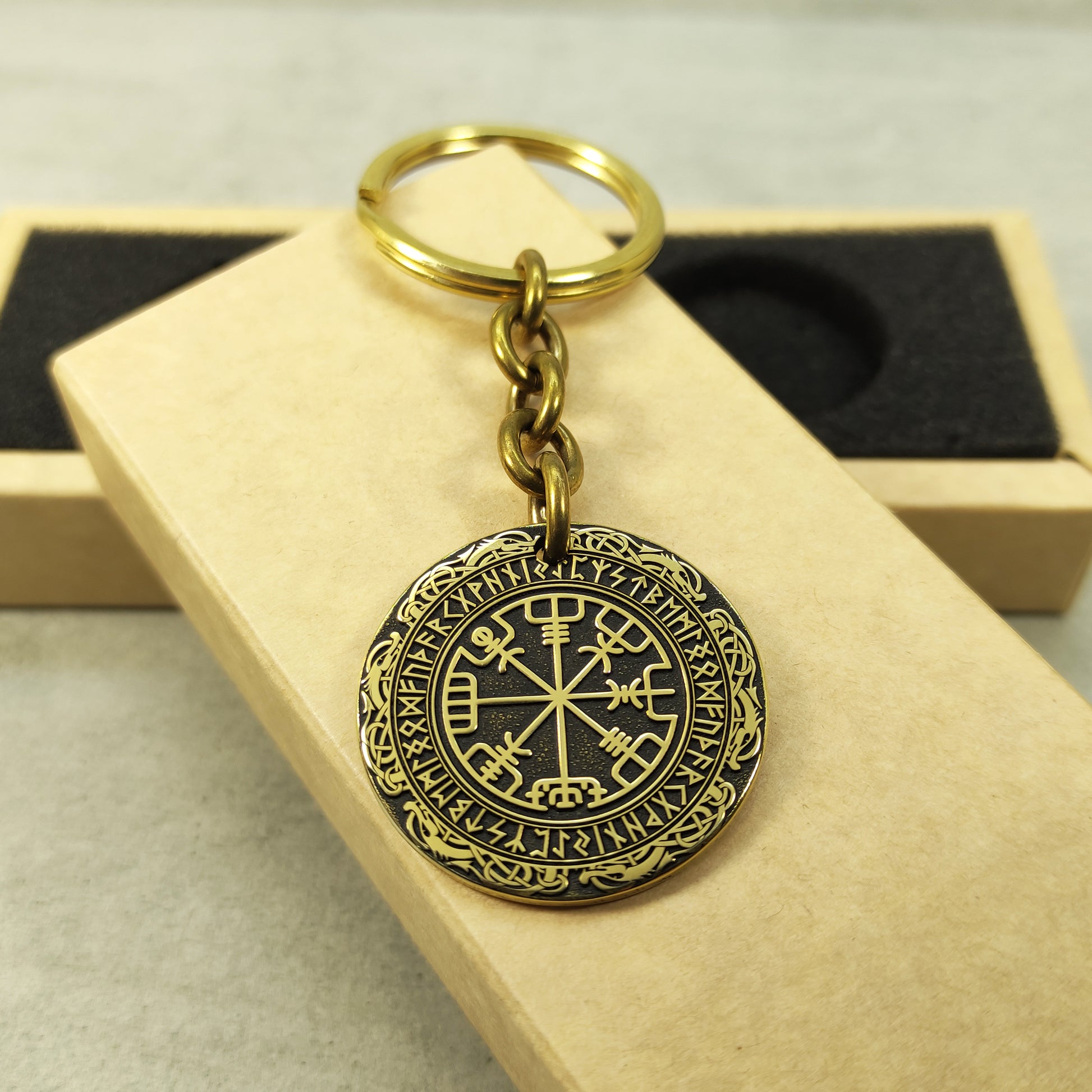 Brass Keychain Coin "Vegvisir" — Personalized Runic Compass with Engraving
