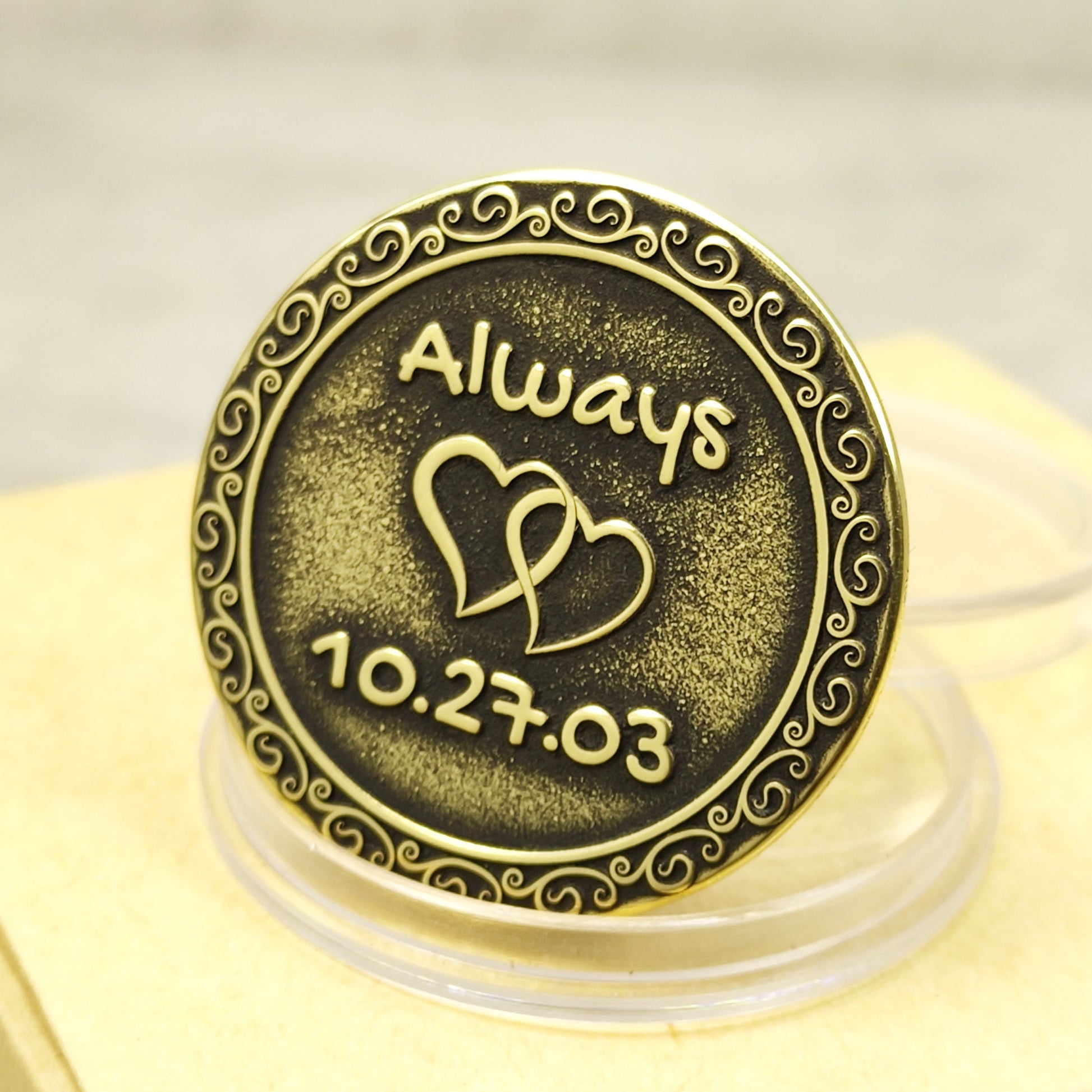 Brass Love Coin – Personalized Gift for Couples, Anniversary or Wedding with Custom Engraving