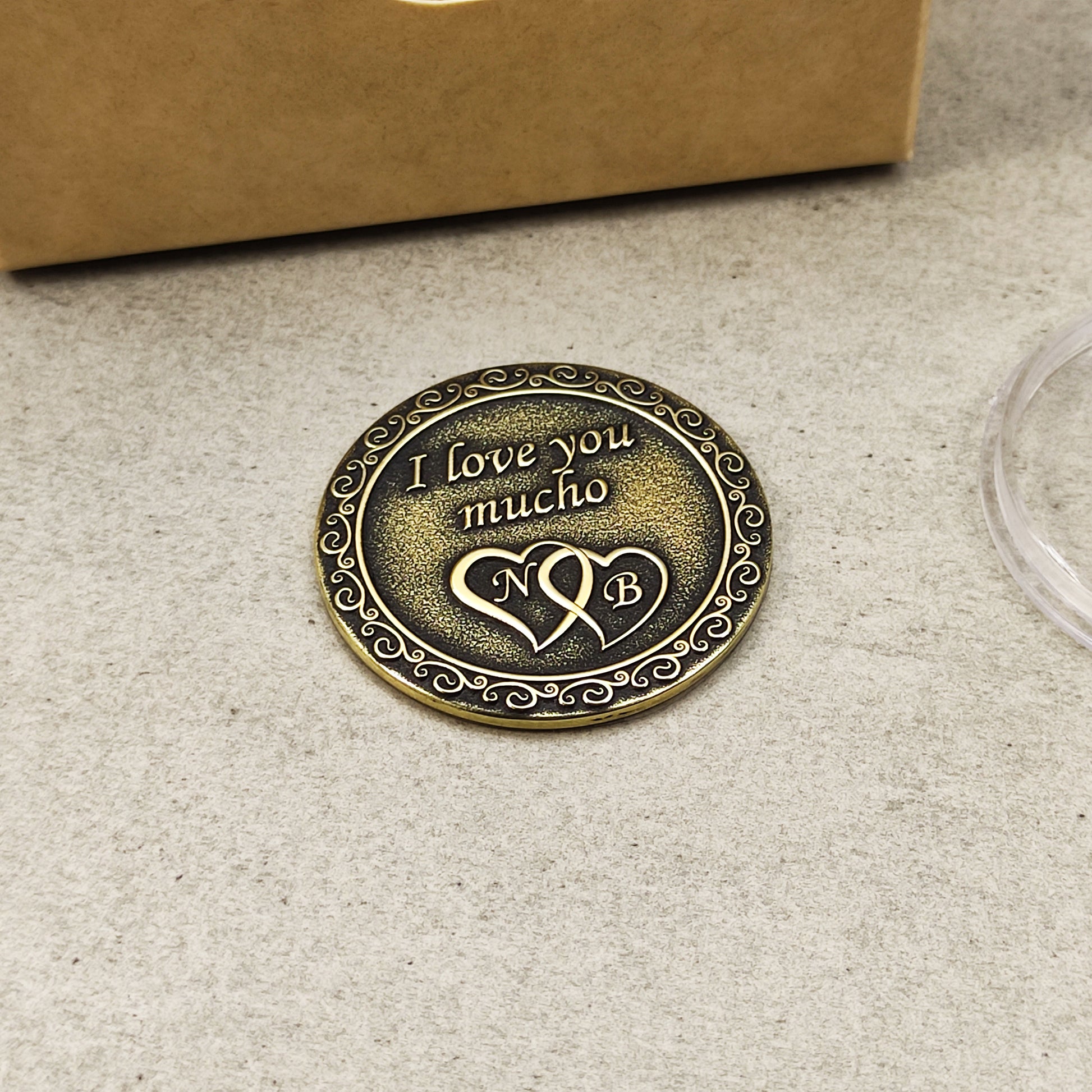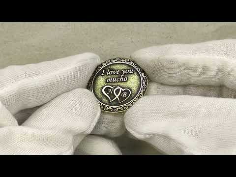 This brass coin with the tender inscription "I love you mucho" and intertwined hearts is a perfect symbol of love for couples. You can add your initials or custom engraving to make it truly unique. Made of durable brass with an antique finish, it features a timeless vintage look. This personalized coin makes a thoughtful gift for an anniversary, Valentine’s Day, engagement, or any romantic occasion. Its detailed craftsmanship and warm design make it a cherished keepsake for lovers. A meaningful handmade souvenir that celebrates love and connection.