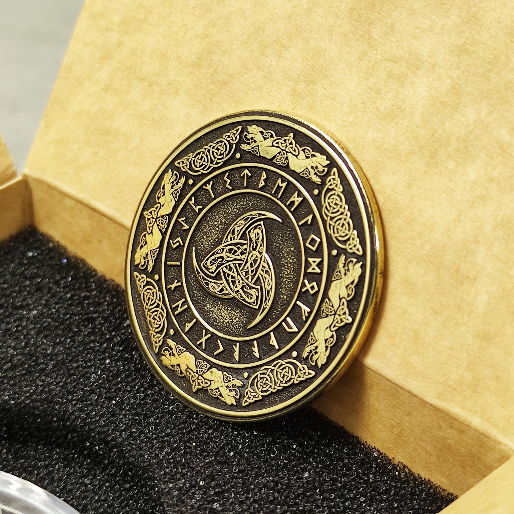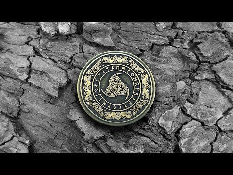 This brass coin featuring Odin’s Triple Horn and a full rune circle is a meaningful Norse-themed gift for mythology lovers, collectors, and Viking enthusiasts. Its detailed engraving, deep ornamental texture, and antique brass finish create the appearance of an authentic mystical artifact. The powerful symbol of the Triple Horn represents wisdom, inspiration, and the spirit of Odin, making the coin a unique keepsake or protective talisman. The refined craftsmanship and contrasting design highlight every element of the Norse pattern. Personalization options allow adding a name, date, or short phrase, turning the coin into a truly unique and memorable gift. Perfect for anniversaries, celebrations, or as a symbolic collectible item.