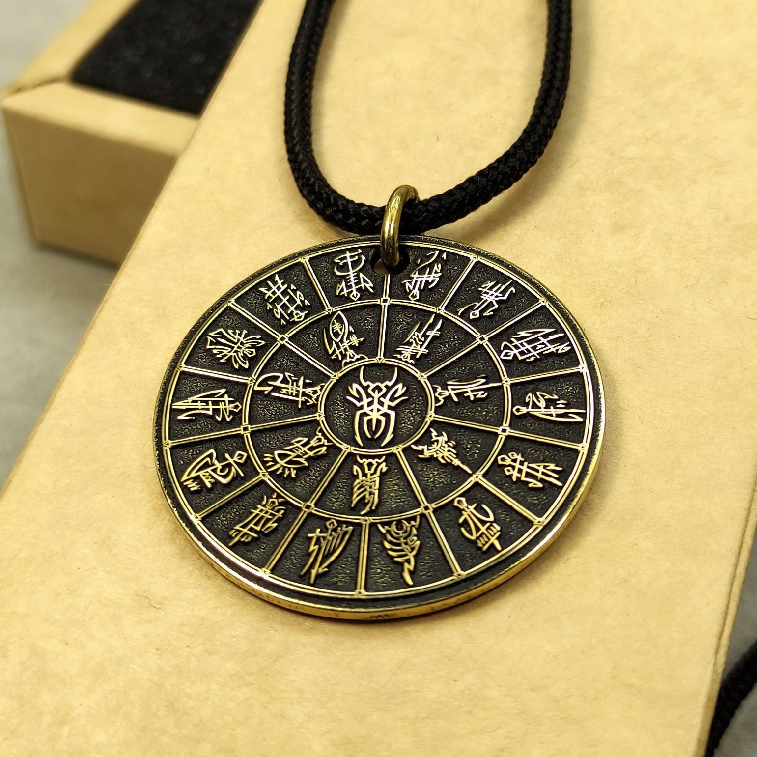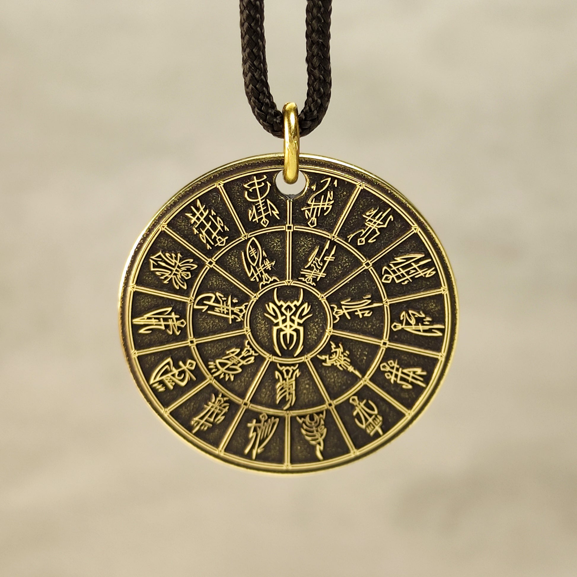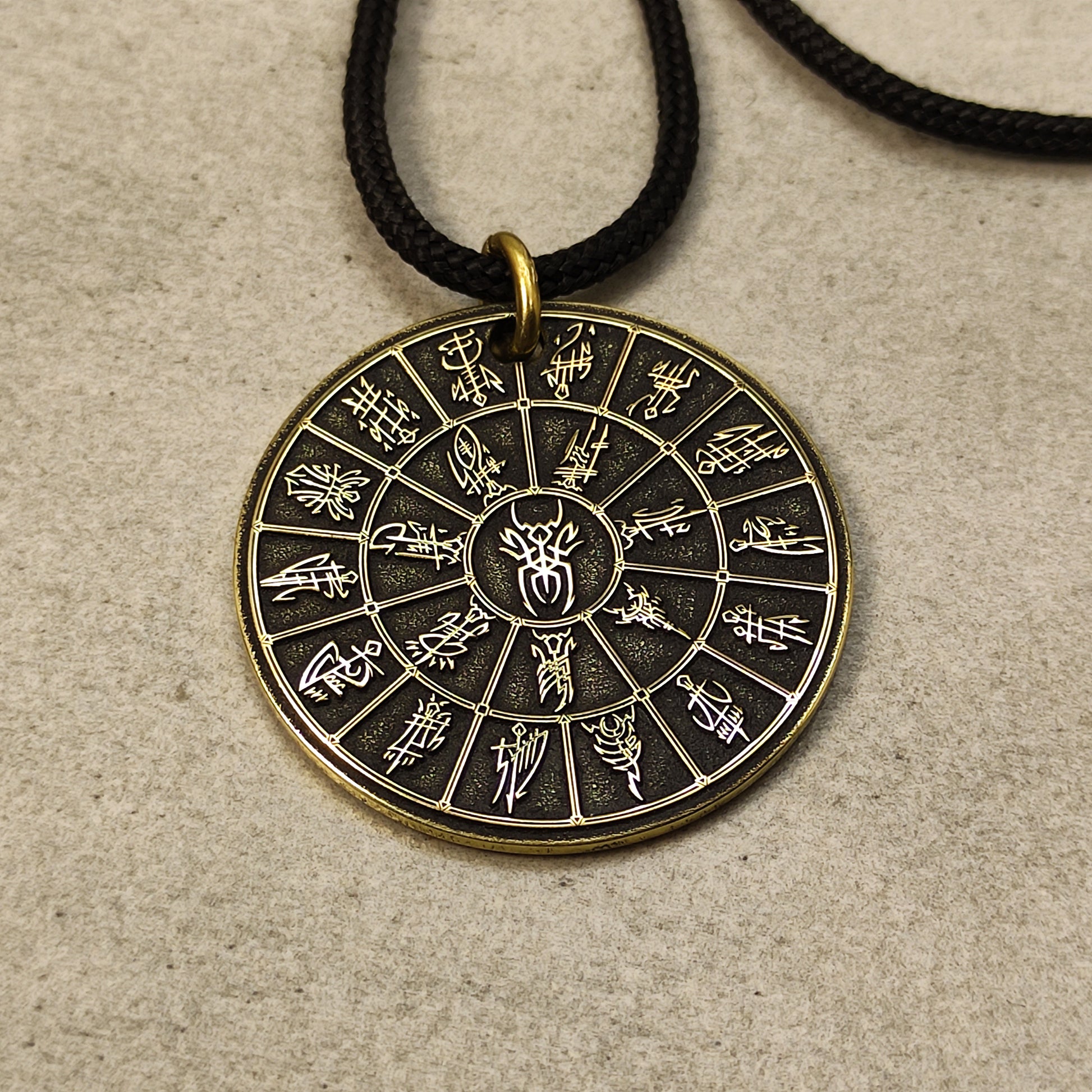 Brass Pendant Coin "Mandala Dark Elves Pantheon (Kitarai)" — Fantasy Amulet with Personalization