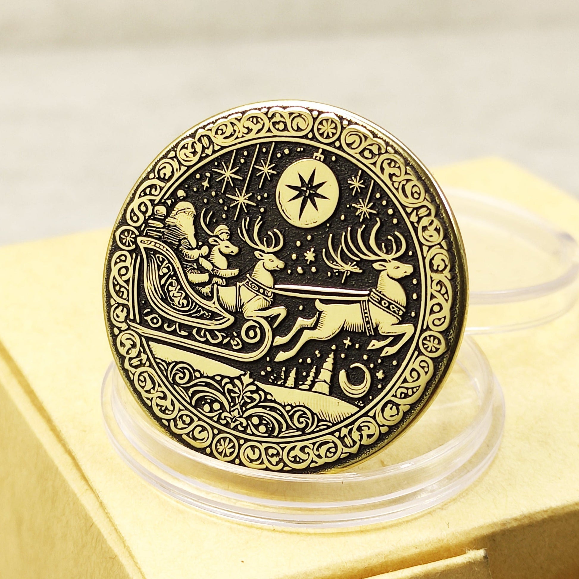The brass "Santa in Sleigh" coin is a festive collectible accessory designed to capture the magic of Christmas. The detailed scene featuring Santa, reindeer, and a starry night sky makes this coin a charming and meaningful seasonal keepsake. Personalization allows you to add a custom text, date, or message, turning the coin into a unique and memorable gift. The warm tone and durability of brass ensure a long-lasting and visually appealing piece. This coin is perfect as a Christmas gift, a corporate present, or a family memento. It blends decorative appeal with symbolic meaning, fitting seamlessly into any collection. A beautifully crafted Christmas coin that adds holiday spirit to any gift.