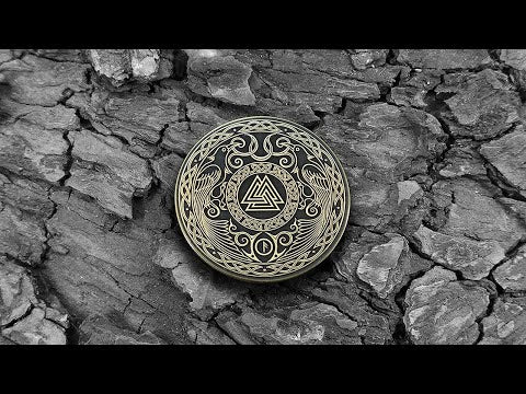 This brass coin featuring the Valknut, also known as the Knot of the Fallen, is a powerful Norse-inspired gift for mythology lovers, Viking culture fans, and collectors of symbolic artifacts. The central Valknut is framed by intricate Celtic knotwork and Odin’s ravens, Huginn and Muninn, symbolizing wisdom, memory, and spiritual protection. The detailed Nordic-style ornamentation gives the coin the look of an authentic mythological relic. It serves as a meaningful talisman, a striking display piece, or a memorable collectible for anyone fascinated by Norse symbols. The antique brass texture enhances its depth and character, making it an eye-catching item in any collection. Personalization options allow adding a name, date, or short custom message to create a unique and thoughtful gift.