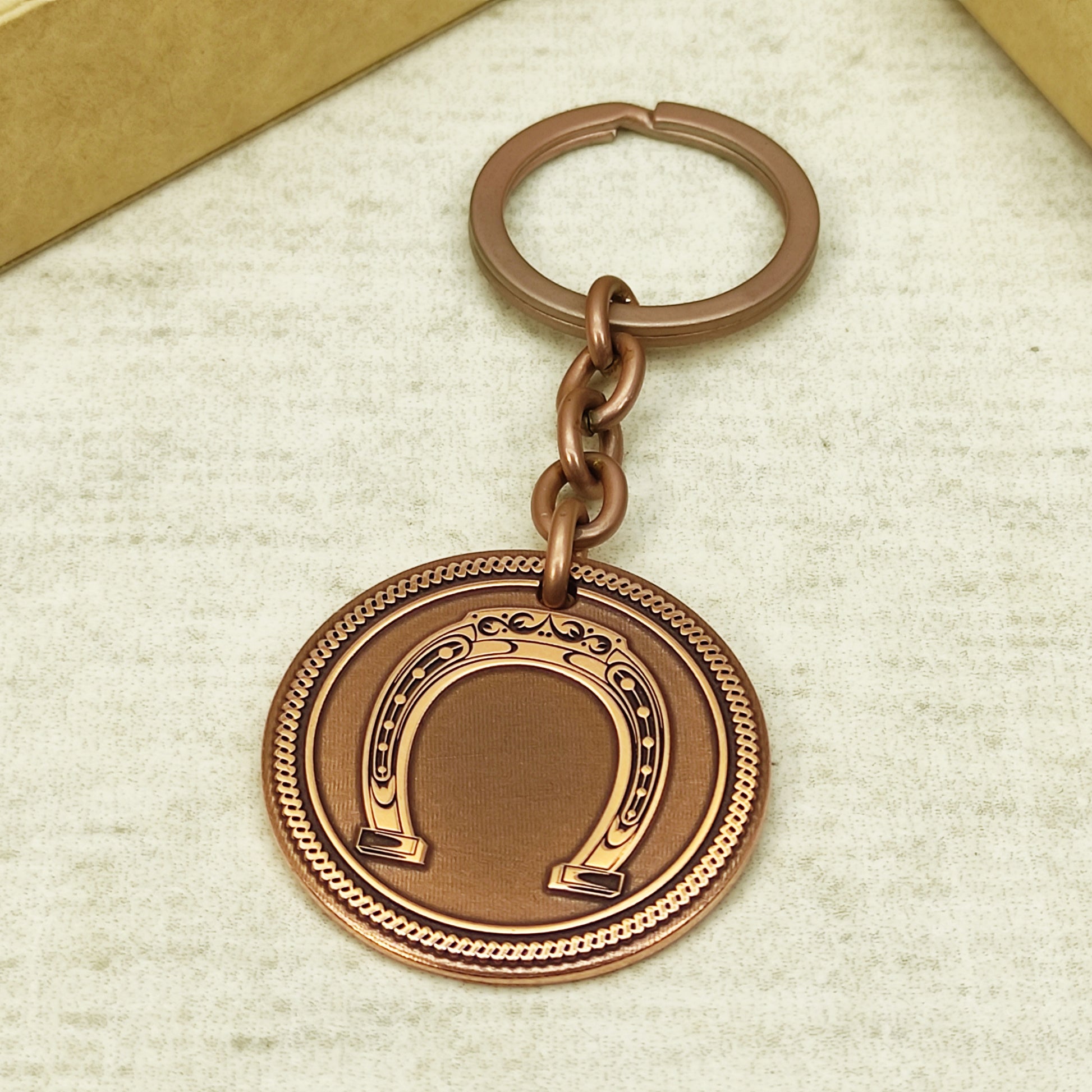Copper Coin Keychain with Horseshoe – Personalized Lucky Charm