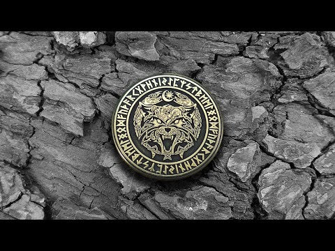 The brass "Fenrir Wolf" coin is a powerful talisman of strength, courage, and protection inspired by Norse mythology. The detailed engraving features the legendary Fenrir surrounded by a ring of runes, enhancing its symbolic meaning. Crafted from high-quality brass, the coin showcases deep, precise engraving and exceptional craftsmanship. Personalization is available, allowing you to add custom engraving for a meaningful gift or collection piece. Perfect for fans of Norse mythology, runes, amulets, and unique brass collectibles. This coin makes an impressive protective charm or a memorable gift for any occasion.