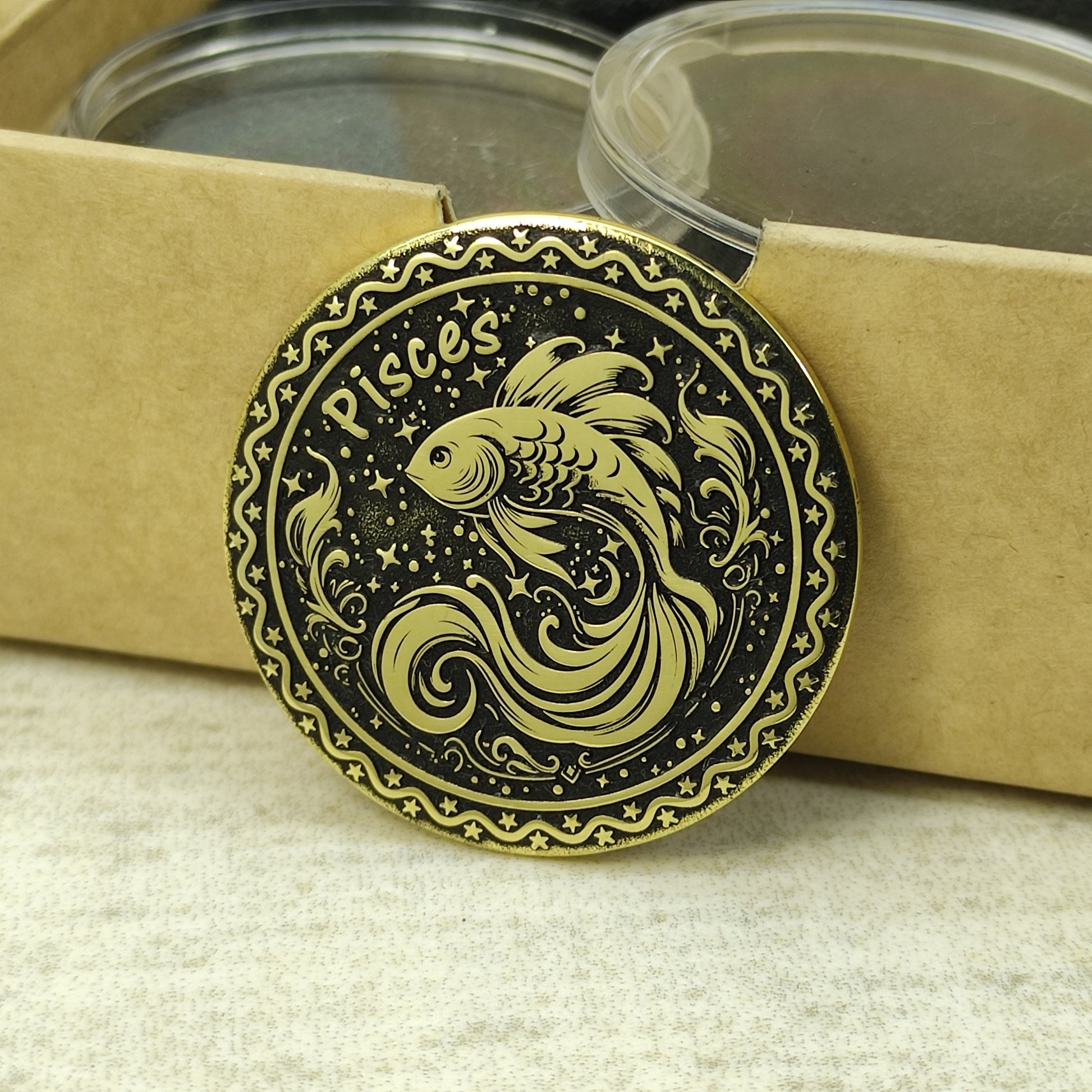 Personalized Brass Pisces Coin – Unique Zodiac Talisman Gift