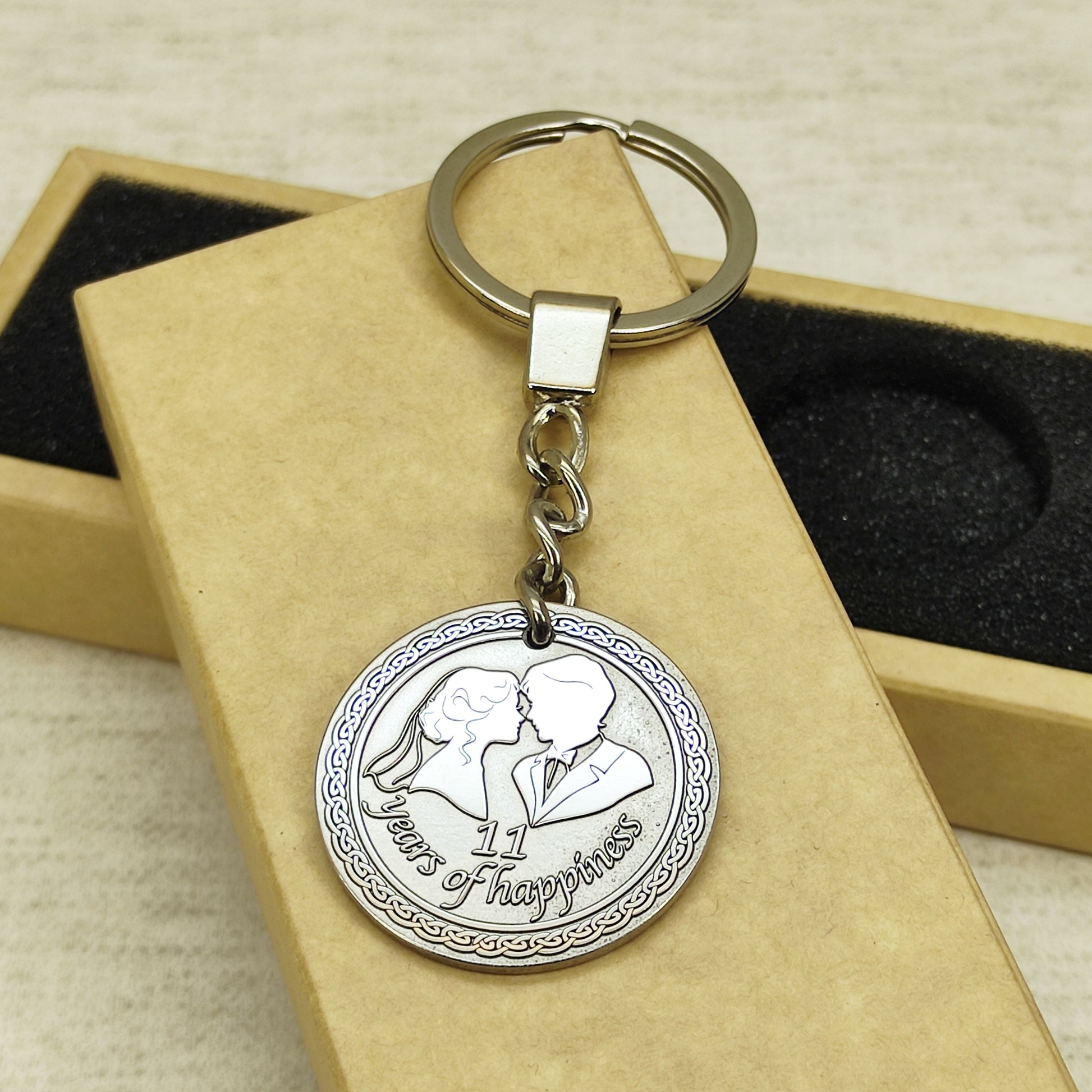 Stainless Steel 11th Wedding Anniversary Coin Keychain - Personalized Engraved Gift for Steel Anniversary