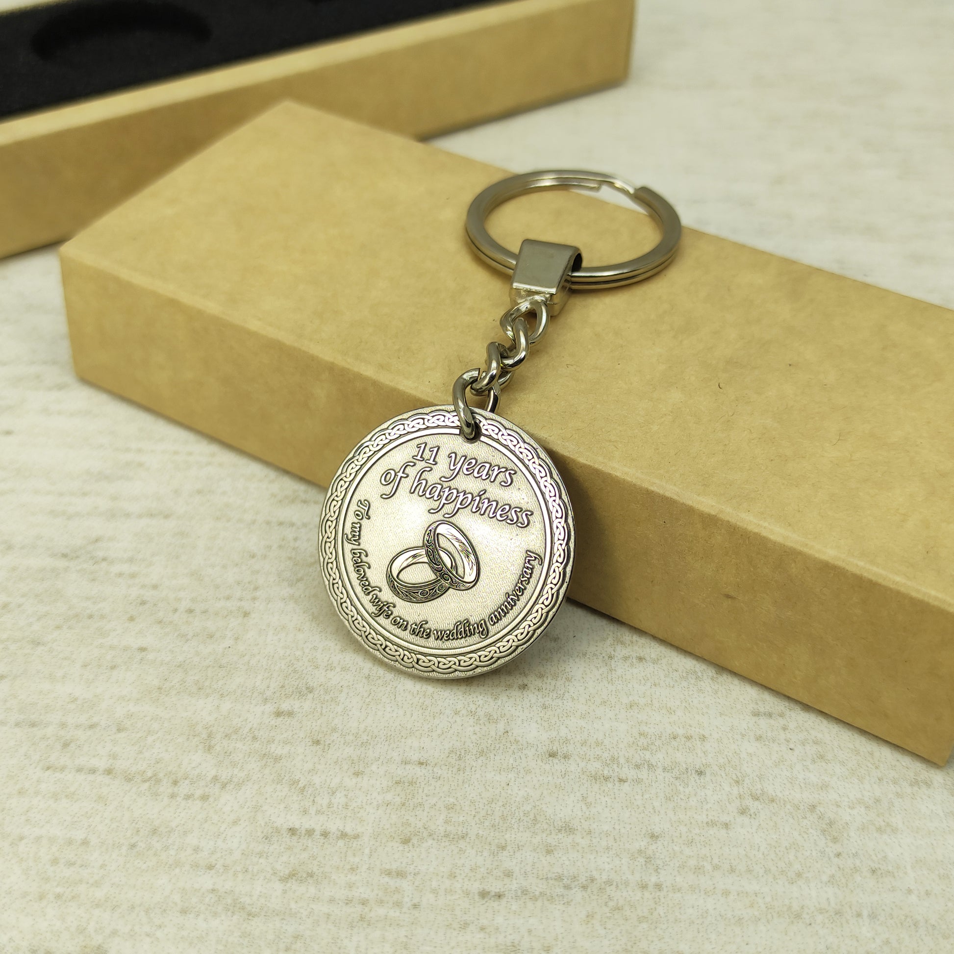 Stainless Steel 11th Wedding Anniversary Coin Keychain - Personalized Engraved Gift for Wife